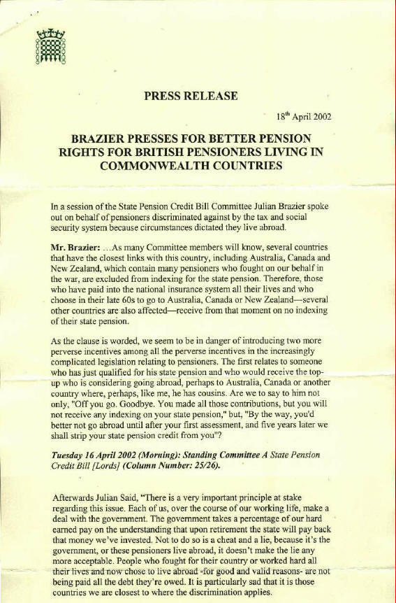 Julian Brazier speaks out on behalf of British pensioners in Commonwealth countries